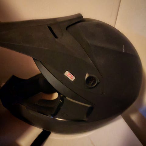 Jo elämää nähnyt mopokypärä, lippa korjattu teipillä, kiinnikkeet toimii.