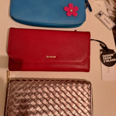 Tästä aidot uudet lompakot, ollut kaapissa turhan panttina. Ikävä kyllä nämä ovat tyhjät, mutta jollekin tarvitsevalle. Pari sipsipussia ja fanta