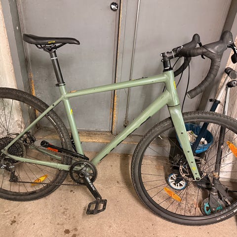 Myynnissä monikäyttöinen, teräsrunkoinen ja hyväkuntoinen Kona. Pyörä huollettu 11/2025 (arvo 100e). Mm. ketju vaihdettu, jarrut ja vaihteet säädetty sekä tehty perusputsaus (kuitti tallella). Vaihteisto: Shimano sora. Jarruina mekaaniset levyjarrut. Renkaina Panaracer gravelking slicksit.