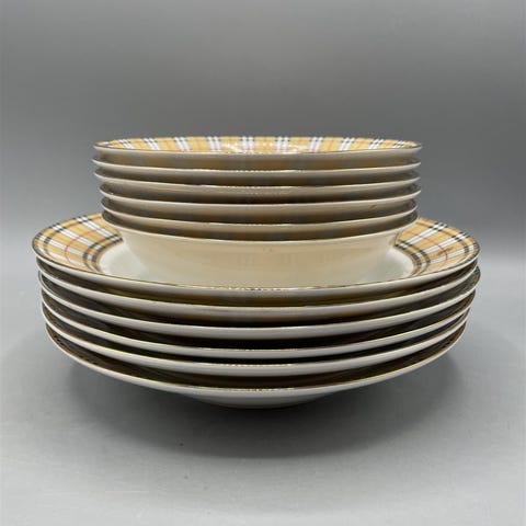 Burberrys Fine Bone China posliini tee/kahviastiat 6-osaa.4kpl kahvikuppi ja tassi. Tarjoilulautanen. Tee/kahvikannu.
