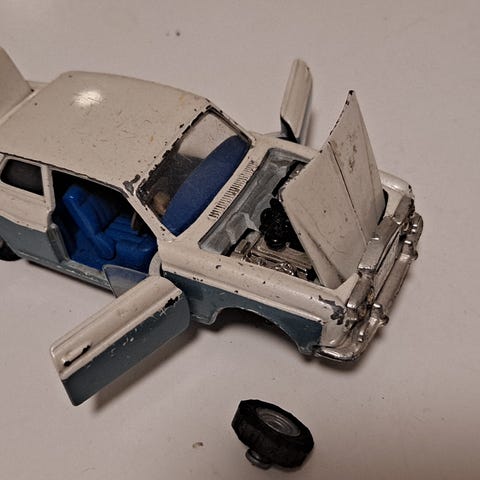 Vintage Barbien auto Rolls Royce. Kulumaa nähtävissä. Väri sisältä (penkeistä etenkin) kellastanut, kromiosat hieman kellastuneet ja vasemmassa etupyörässä myös nähtävissä kromipuutosta.