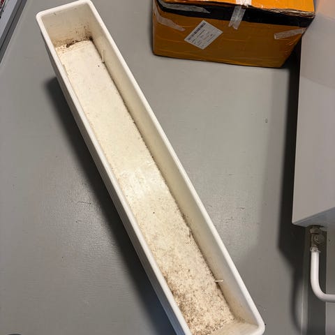 Kulumaa sisäpuolella. Pinta lasitettu. Pohjassa reikä veden poistumista varten. Muuton alta, nouto Espoosta. Erittäin painava, auton saa melkein ulko-oven eteen. Ollut ulkona pihalla sekä parvekkeella ja hyvin kestänyt talvellakin.