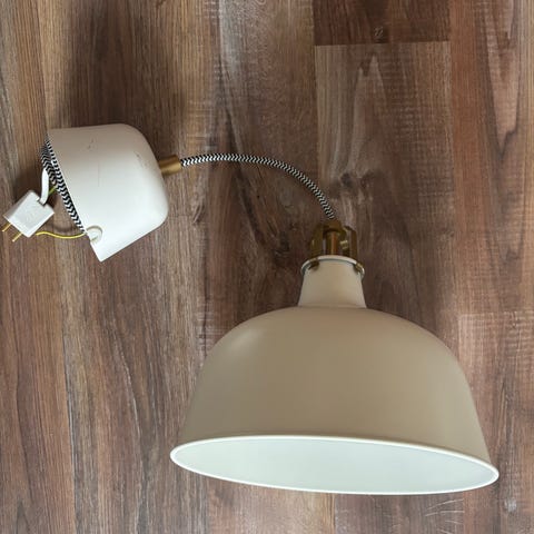 5-haarainen kattolamppu, metallia, koristeena lehtiä, ruskea. Otettu katosta alas toimivana, nyt ollut kellarissa muutaman vuoden - pitäisi kuitenkin toimia. Lampuissa pienet kannat. Nouto Turusta Uittamolta. Tuskin kannattaa lähetellä muualle, vääntyy postissa ja isot kulut.