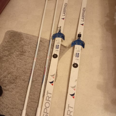 Suksissa on naarmuja pohjassa sekä vaurioita pinnassa. Näkyy kuvissa. Siteet toimii. NNN.