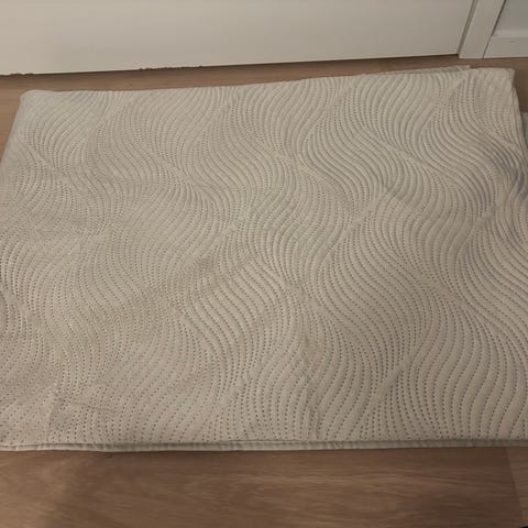 Beige päiväpeitto parisänkyyn. Kuvassa 160cm sänky