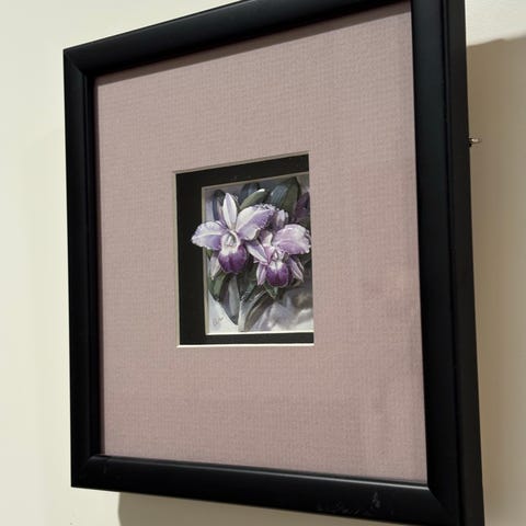 Erinomaisessa kunnossa oleva IKEAn taulu Erikslund. Koko 72 x 32 cm. Huurrelasi, valkoiset kehykset, kuvassa pinkki / vaaleanpunainen kukka-aihe.