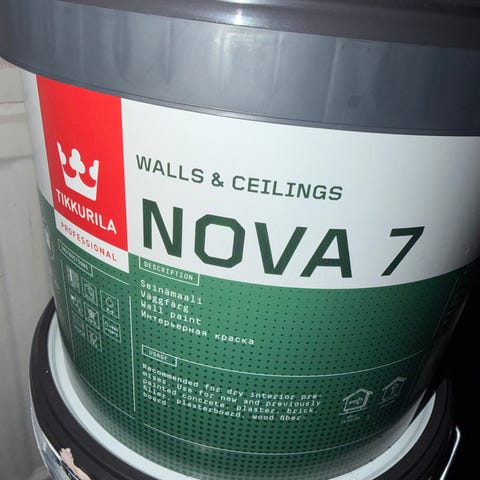 Avattu maalipurkki Nova 7 jäljellä yli 10l, säilytetty huoneenlämmössä