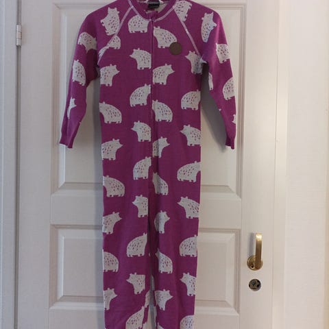 Lämmin paksuhko villahaalari. Jonathan. Kokolapussa 130, menee 128. Lahkeesta paikattu. Hihansuut puuvillaa.