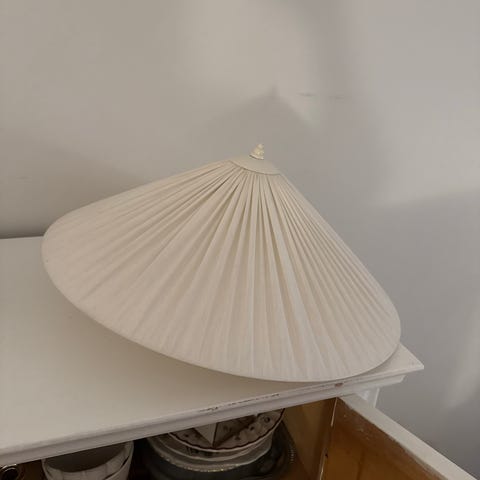 Vaalea 100% silkkiä kultabeigeillä puuvillaraidoilla oleva kattovalaisin kullanvärisellä kangas johdolla Ovh 179,-