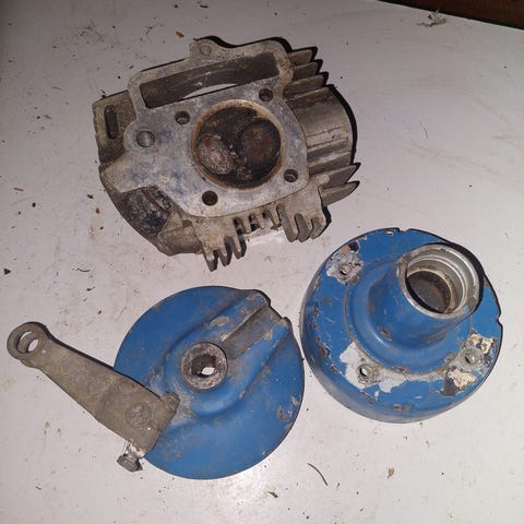 Myydään jotain sekalaisia mopon osia, noutamalla kaikki +joku mankin aut moottori alakerta.