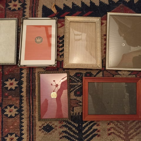 3kpl koristeellisia antiikkikehyksiä lasilla.