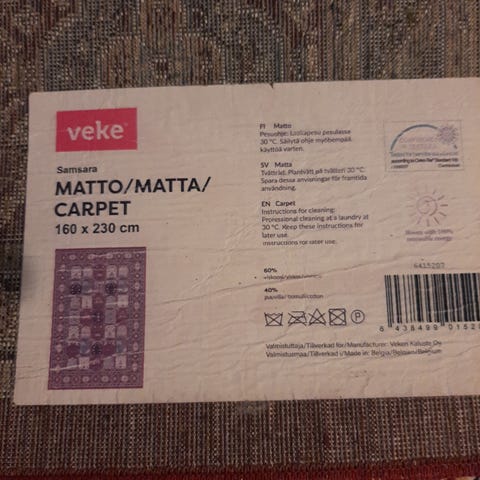 Ihanan pehmeä ja kaunis Veken Lumihiutale -matto. Väärän kokoinen nykyiseen asuntoon, joten siksi myyntiin. En löytänyt moitteita kunnosta. Savuton ja lemmikitön talous.