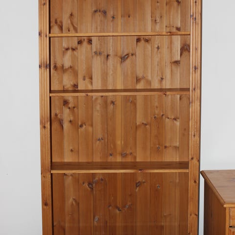 Vanha, siisti kirjahylly. Kuvassa olevia osia 2 kpl. Yläosan syvyys 27cm ja alaosan syvyys 40 cm. Kahden osan yhteisleveys 196cm. Saa kuljetettua kuudessa osassa.
