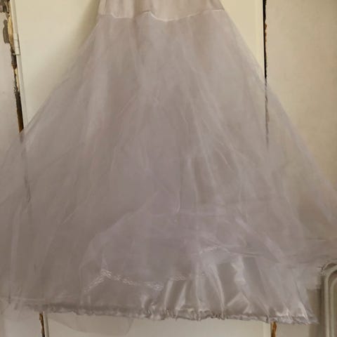 Peirier-merkkinen valkoinen alushame esimerkiksi vanhojentanssimekon, häämekon tai muun iltapuvun alle tuomaan muhkeutta. Tylliä. Vähän käytetty, tosi hyvässä kunnossa.