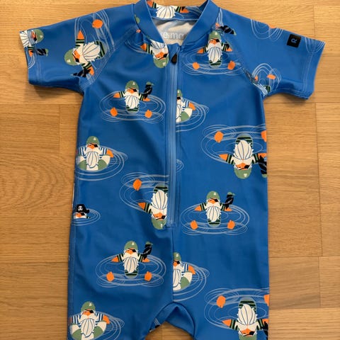 Reiman värikäs uima-asu tytölle. Käytettiin sitä koossa 74, minusta uikkarit ovat naftia kokoa, ehkä 68 cm-kokoiselle sopivat myös.