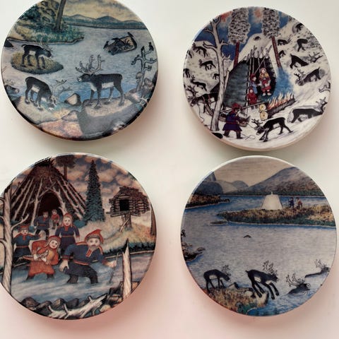 Asta Pulkkisen pienet puiset seinätaulut, koko 12x9 cm, 4 kpl yhteensä 15 euroa