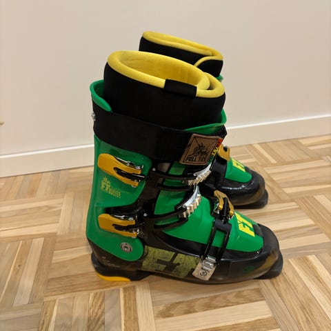 Noin 8 laskukauden ajan käytetyt, vuoden 2015 Full Tilt Booter -laskettelumonot. Monot ovat edelleen hyvin käyttökelpoiset, mutta ikä näkyy kosmeettisena kulumisena. Yksi jalkapöydän solki on hieman vääntynyt, mutta täysin toimiva. Pohjissa on vielä hyvin pintaa jäljellä.