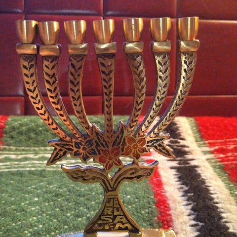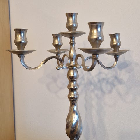 Menora seitsenhaaraine messinkiä oleva kynttilänjalka korkeus 26 cm leveys 25 cm kaunis ja vanha kynttelikkö