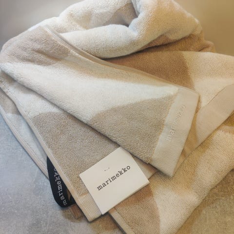 Myydään 2 kpl Marimekon Lokki-kylpypyyhettä. Pyyheet ovat väriltään mustabeigejä. Ne ovat käyttämättömiä, laput paikoillaan. 25€ kpl tai jos otat molemmat niin yhteensä 40€