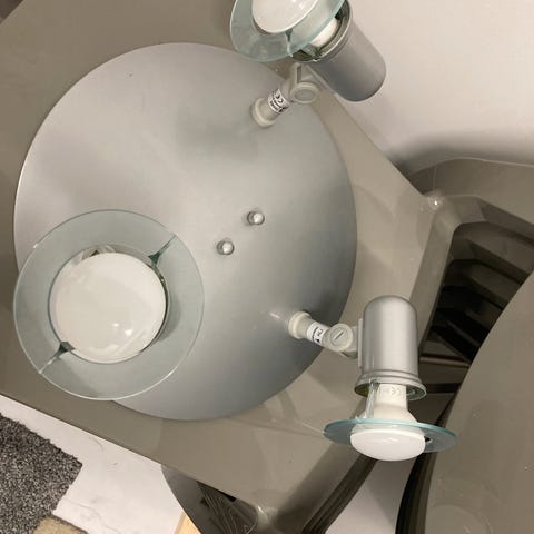 Harmaa huopapintainen varjostin. Sähköosat 3 vuotta vanhat.