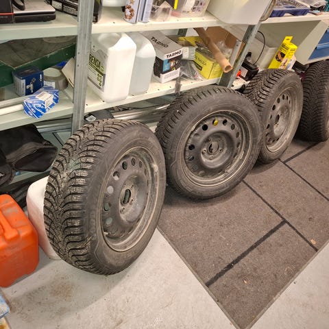 Myyn vuonna 2017 valmistetut Kia Ceratoon kuuluvat nastarenkaat vanteineen. Renkaiden merkki on Kumho ja niissä on pintaa vielä noin 7 mm jäljellä (keskeltä mitattuna).