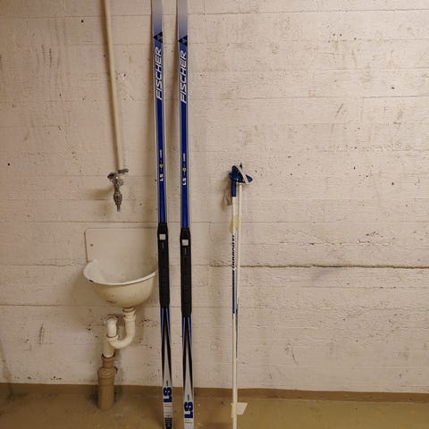 Kuvien mukaisessa kunnossa olevat murtomaasukset sekä sauvat. NNN-siteet.