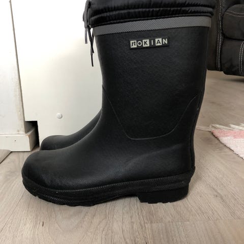 Muutaman kerran jalassa olleet karvavuorelliset kumisaappaat. Omaan jalkaan liian suuret, siksi myyn.