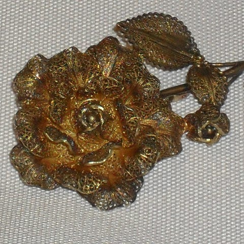 Kaunis iso rintaneula pukukoru tumman lilan ja sinertävän sävyisin kristallein. Materiaali messingin väristä korumetallia ja muovia. Uusi, koristeena ollut.