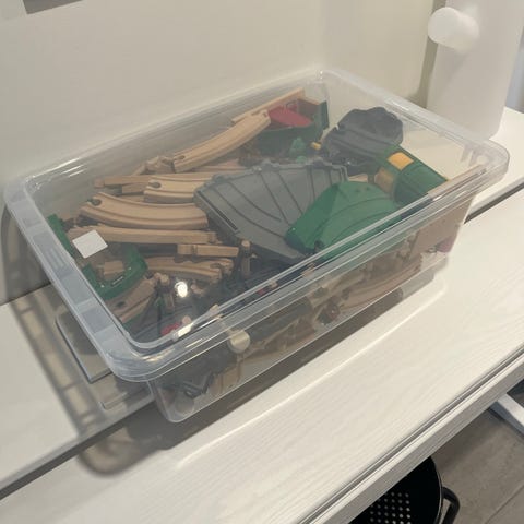Paljon erilaisia junaradan osia sekä junia/vaunuja