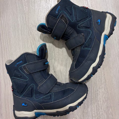 Viking lasten talvikengät, koko 29, väriltään sininen. Kengissä on tarrakiinnitys ja kumipohja, joka tarjoaa hyvän pidon erilaisilla alustoilla.