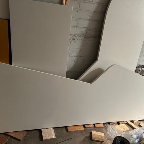 Työpöydän ylle tuleva korkea taso, toimii esim. asiakastiskinä tai lisätasona. Laadukas, paksua levyä, pinnat erittäin siistit. Purettu osiin, saa kuljetettua helposti, suurin osa taustalevy. Helppo kasata upotetuilla ruuveilla. Väri pyykki lähinnä. Mukaan tulee johtokouru. Nouto.