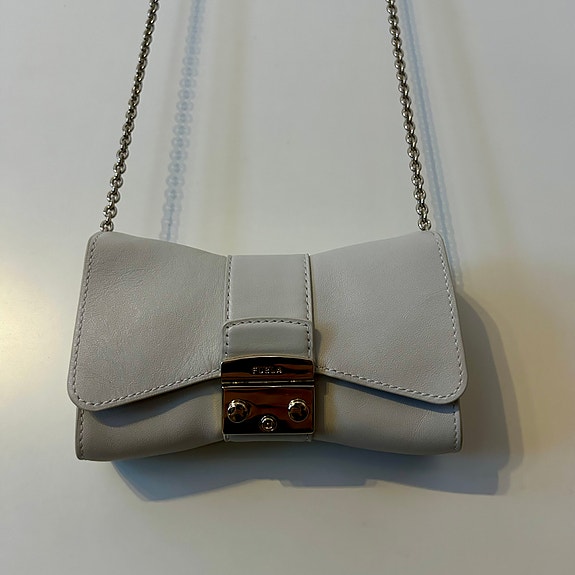 Metalliosat ovat kullanväriset ja niissä on vain hyvin vähäistä hiusnaarmuuntumista. Olkahihnan nahka on pysynyt erittäin hyvässä kunnossa, ainoa huomioitava seikka on lievä reunamaalin halkeilu hihnan oikean puolen alaosassa (näkyy viimeisessä kuvassa). Magneettikiinnitys toimii moitteettomasti.