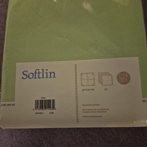 8 kankaista kirjottua lautasliinaa,Vain nouto.
