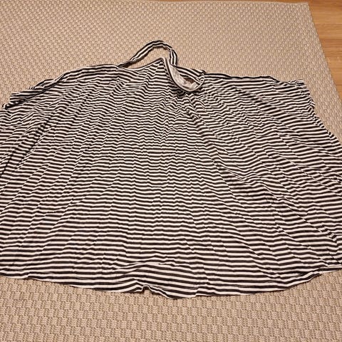 Mustaharmaa raidallinen. Antaa hyvän suojan imetykseen ja toimii myös asusteena.