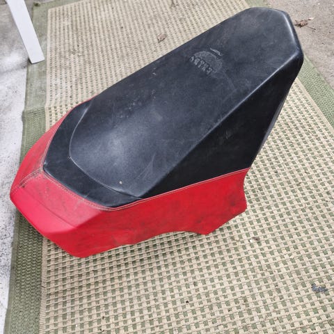 Uutena liikkeessä 2-istuttavaan vaihdettu. Pohjan lippa kuidutettu takaisin kiinni kun katkennut johonkin