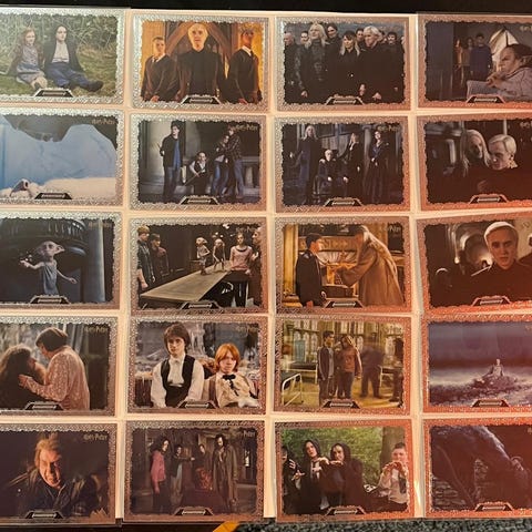 Mukana hahmokortteja, elokuvakohtauksia sekä erikoiskortteja.