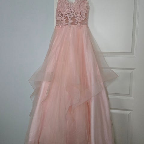 Ihana vaalea glitterinen kokoa 32 oleva vanhojentanssimekko hyvässä kunnossa!m (ostettu 2025). Mekkoa on käytetty yksissä vanhojentansseissa. Oma pituus noin 165cm. Alkuperäinen hinta 699€. Saa tulla kokeilemaan!