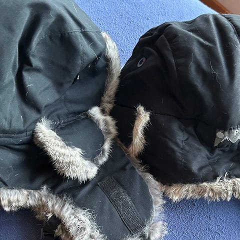 Hattu ollee nappanahkaa ja turkista, arkki on Angelica Fasiion. Sisältä topattu ja takana on nauha, jolla voi jnk verran säätää kokoa. Halutessa leuan alta voi kiinnittää neppareilla, jolloin korvat ja posket pysyvät todella lämpiminä. "Korvat peittävät kappaleet" voi vetää myös kauniisti taakse.