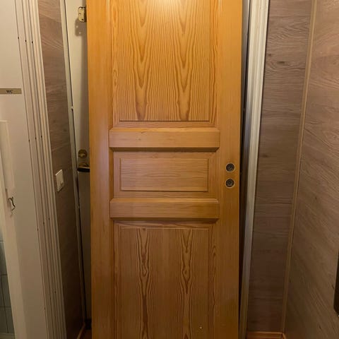 Myydään täyspuu väliovi. Toiselta puolen maalattu valkoisella.