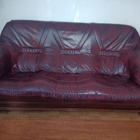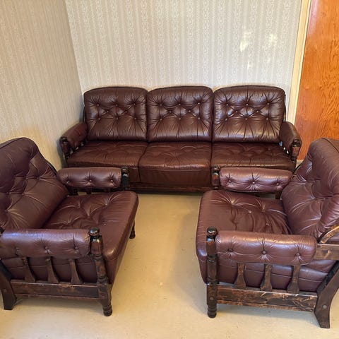 Myydään hyväkuntoinen nahkainen sohvaryhmä.