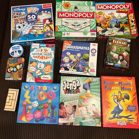 Kaksi Monopoly lautapeliä. Monopoly Super Mario Celebration ja Monopoly Palmusaaren pohatta.