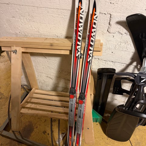 VARATTU Lasten 110cm sukset, sauvat ja 34 monot
