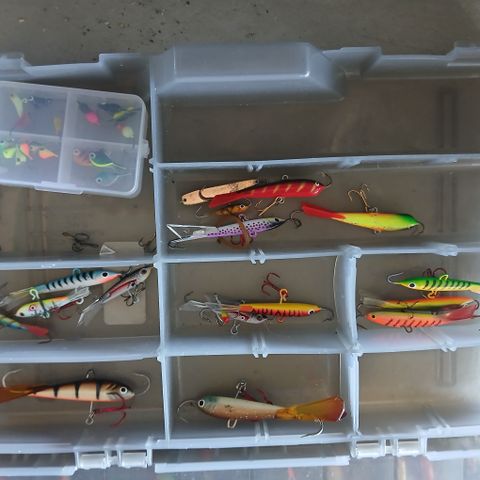 Tästä 85mm (koukun mutkasta mutkaan) pitkiä luomuvärillisiä tasureita eteenpäin. Painoa noin 10g. Pilkit uusia.