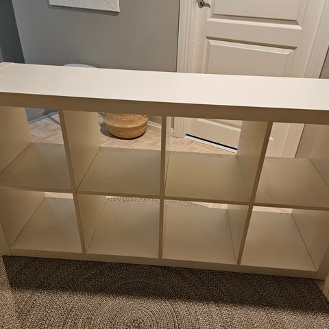 Ikean lack-seinähylly. Ollut muutaman vuoden seinässä, mutta todella hyvässä kunnossa. Jotain likaa tai steariinia saattaa löytyä, naarmuja ja kolhuja ei.
