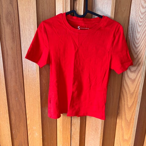 T-paita, koko S, New Yorkerin mallistoa FB Sister, lyhyehkö malli, ja pieni S koko. Väri Peachy Keen, yläosassa verkkomaista kangasta. Siistikuntoinen paita.