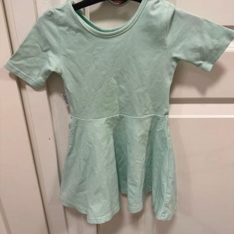 Vaalen mintunvihreä mekko. Kunnossa ei moitittavaa. On pienempää kokoa kuin kokolapussa on, kapeamalli, pitkät hihat.