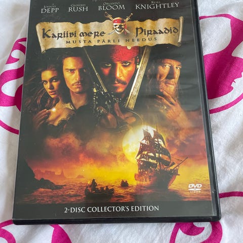 1. DVD "Pirates Of The Caribbean: Kuolleen miehen kirstu" ("Pirates Of The Caribbean: Dead Man's Chest" / "Pirates Of The Caribbean: Död mans kista"). 2-Disc Special Edition. Ohjaaja: Gore Verbinski. Pääosat: Johnny Depp, Orlando Bloom, Keira Knightley, Stellan Skarsgård, Bill Nighy, Jack Davenport, Jonathan Pryce, Tom Hollander ja Geoffrey Rush. Erittäin hyvässä kunnossa (melkein kuin uusi). Sopii lahjaksi. Ostettu Ruotsissa, mutta DVD:llä on suomalaisia tekstityksiä.