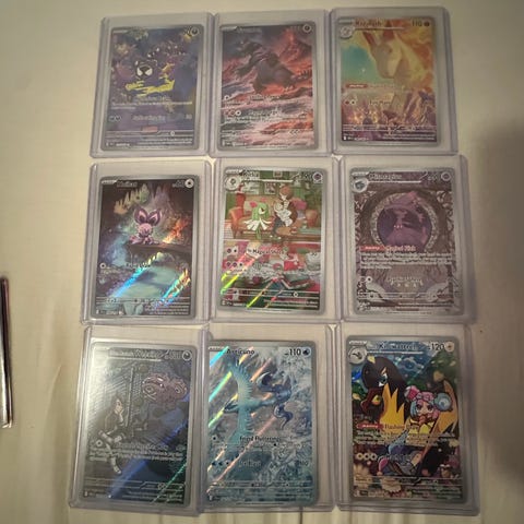 Eri kielisinä, japani, korea, ranskaksi ja englanniksi. Kaikki kortit sleevattu heti pakoista. Kysy lisää jos kiinnostaa.