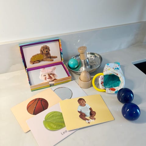 Korkeakontrastiset kuvat vangitsevat vauvan huomion tässä kehitysvaiheessa. Kortit molemminpuoleisia.