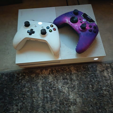 Xbox One S pelikonsoli valkoinen, 2 ohjainta ja 3 peliä